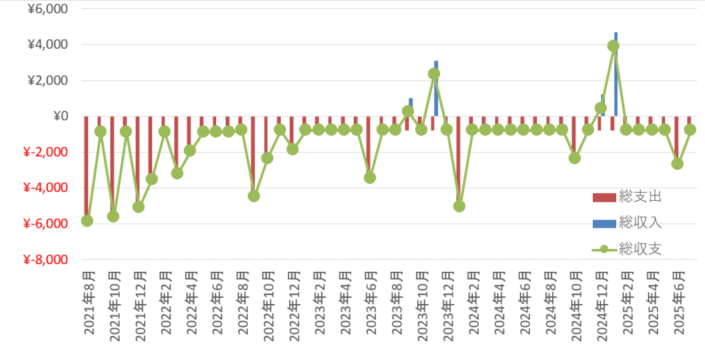 1〜4年目の結果を合算すると、「-65,800円」の赤字